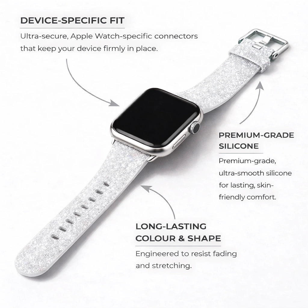 All of our glitter straps for the Apple Watch also come complete with a hard-wearing and ultra-strong buckle connector. This will always makes totally sure that your brand new Glittery Strap will always be securely attached to your wrist, no matter how active you are.