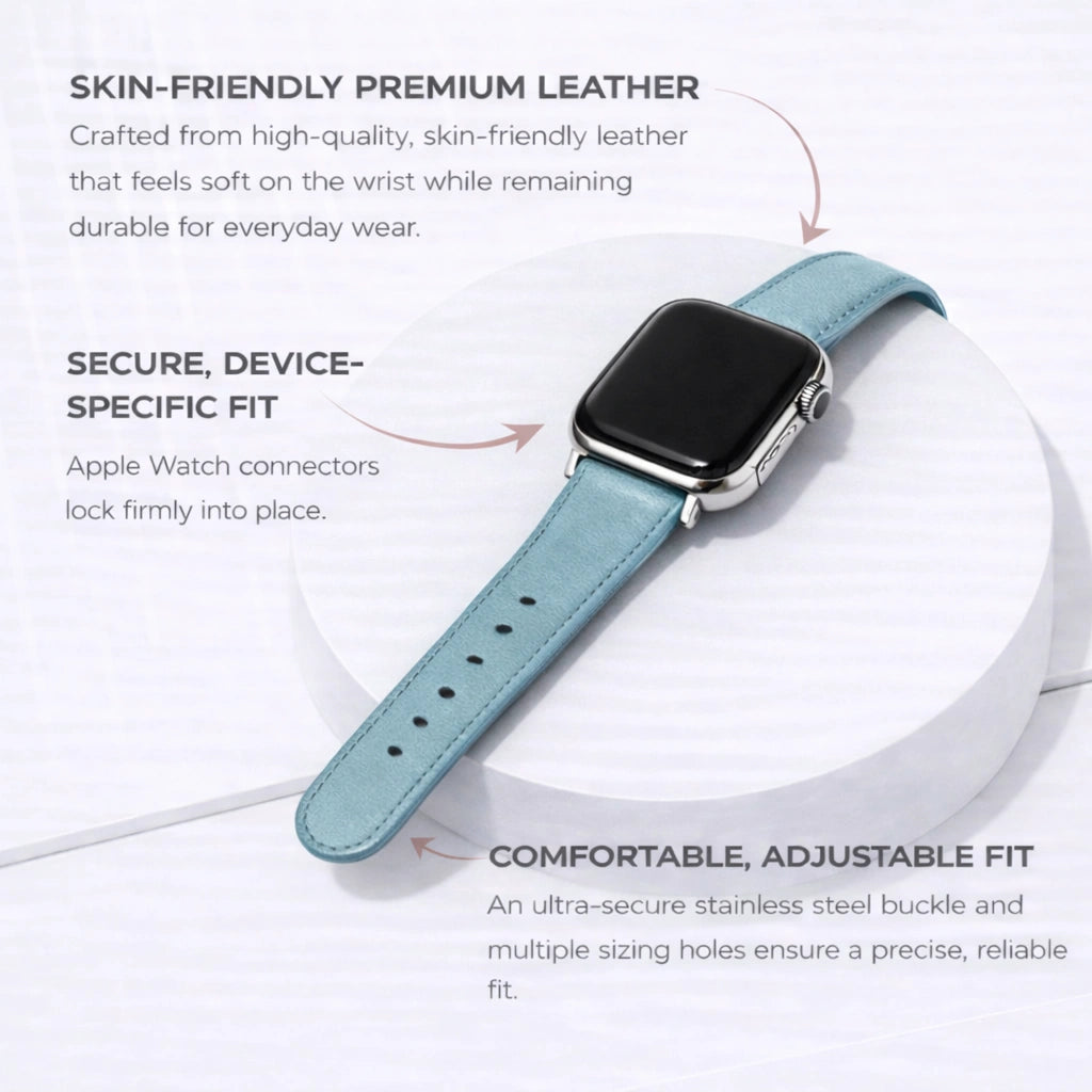The strong magnetic clasp connector on all of our Apple Watch leather bands has been specially designed in order to make sure your Apple Watch strap stays securely attached to your wrist and never goes anywhere you wouldn't want it to, as it has been designed to fit the user's wrist perfectly.